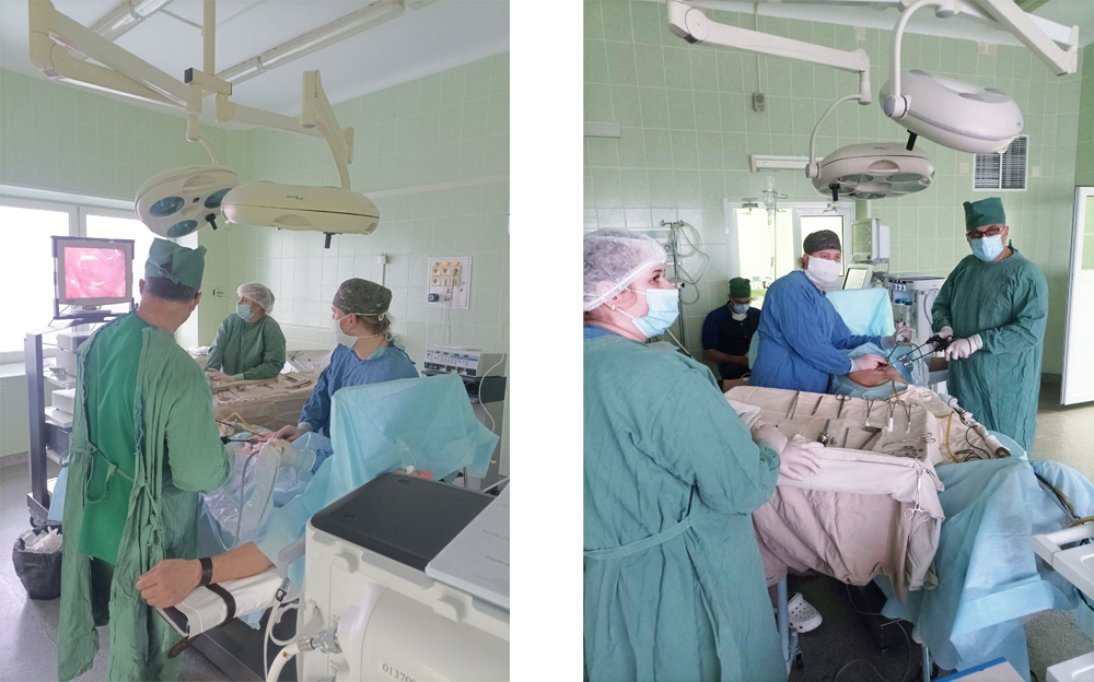 В рамках проводимого мастер-класса была выполнена малоинвазивная хирургия паховых грыж. При этих хирургических вмешательствах Слободин Ю.В., заместитель главного врача по хирургии ГУ РКМЦ, выступил в роли ассистента, а сотрудники больницы – оперирующих хирургов. В процессе операций были отработаны и разобраны проблемные технические и тактические вопросы, которые могут возникнуть в ходе хирургического вмешательства. Это позволит внедрить данный вид современного хирургического лечения паховых грыж в практику ЦРБ.